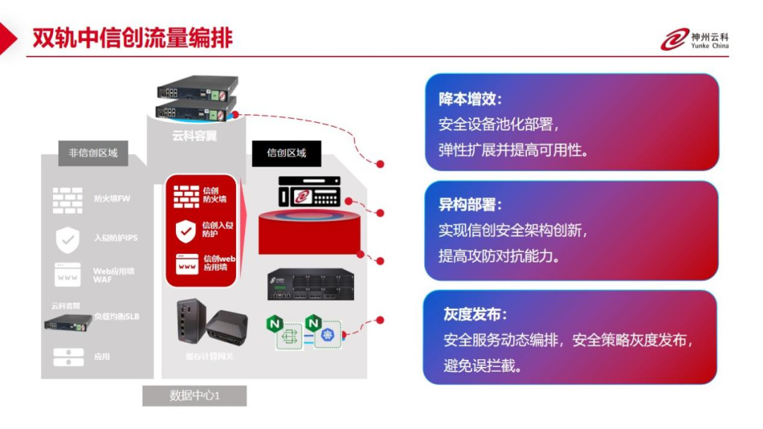 为了更好的适配双轨超高可用架构,东升国际应用交付控制器容翼系列产品和东升国际通明湖信创系列产品一方面可以保证信创产品的稳定性,弥合性能与企业应用要求的差距;一方面,当业务面对合规、风险和创新的挑战时,实现云原生可信开源与跨域协同。